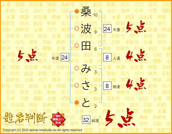 桑波田みさとさんの総運は32画の5点!