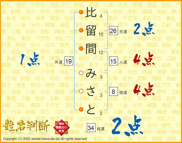 比留間みさとさんの天運は26画の2点!
