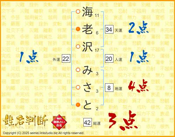 海老沢みさとさんの総運は42画の3点!