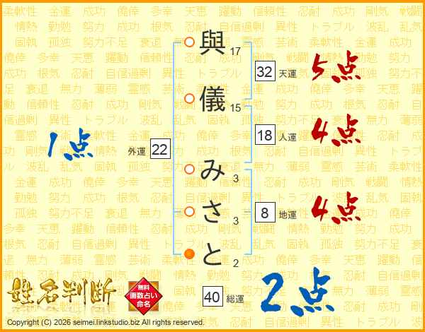 與儀みさとさんの天運は32画の5点!