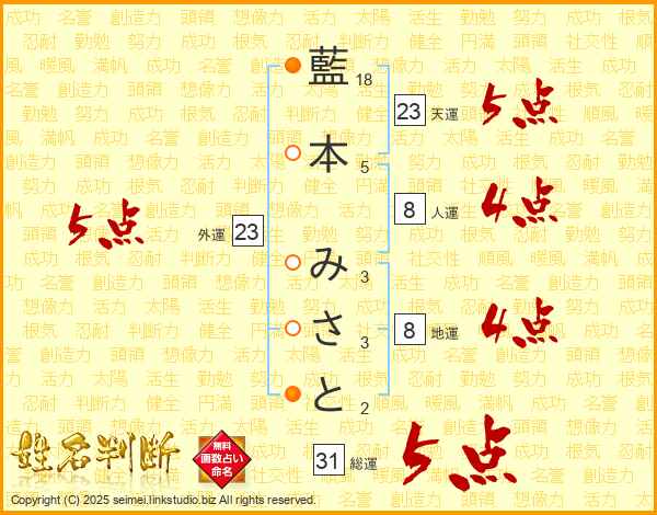 藍(18画)本(5画) み(3画)さ(3画)と(2画)