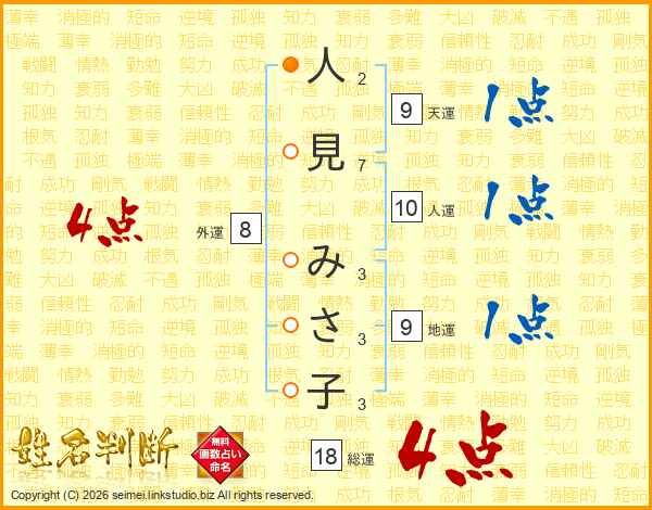 人(2画)見(7画) み(3画)さ(3画)子(3画)