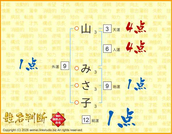 山みさ子さんの総運は12画の1点!