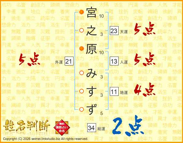 宮之原みすずさんの外運は21画の5点!