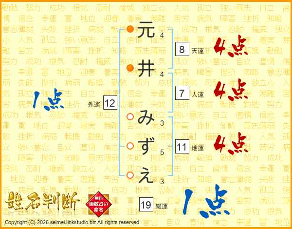 元井みずえさんの地運は11画の4点!