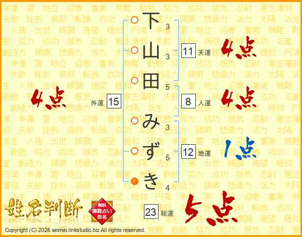 下山田みずきさんの天運は11画の4点!