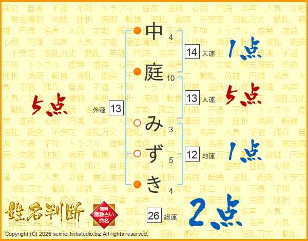 中庭みずきさんの総運は26画の2点!