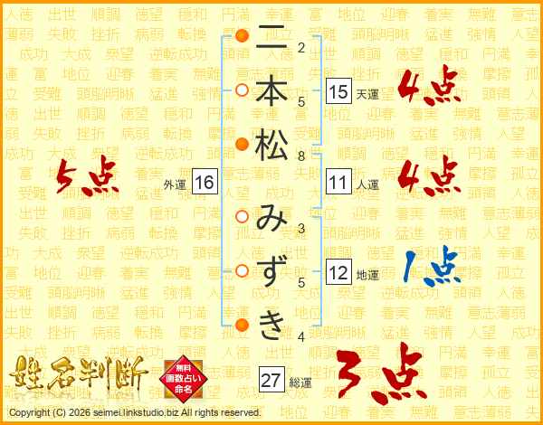 二本松みずきさんの総運は27画の3点!