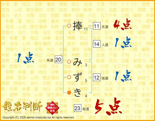 捧みずきさんの天運は11画の4点!