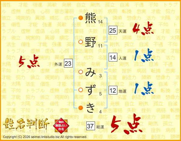熊野みずきさんの総運は37画の5点!
