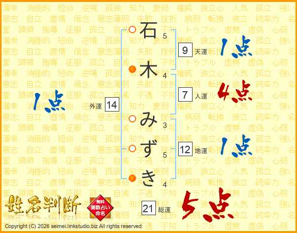 石木みずきさんの総運は21画の5点!