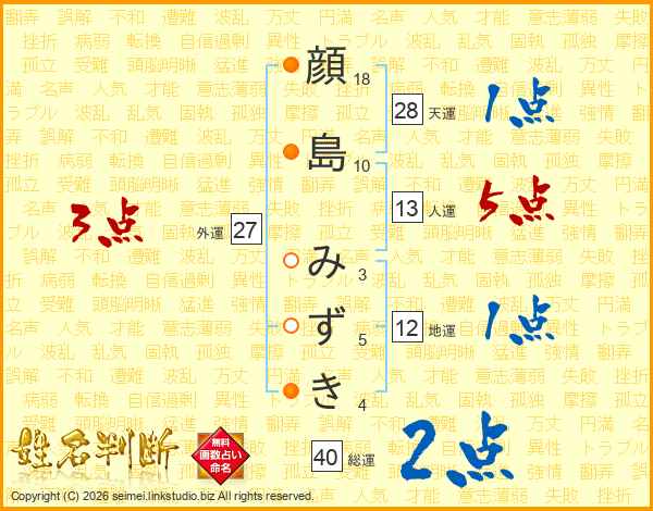 顔島みずきさんの総運は40画の2点!