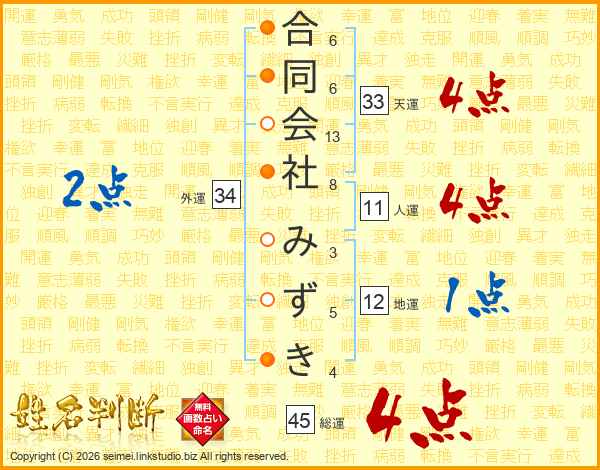 合同会社みずきさんの総運は45画の4点!