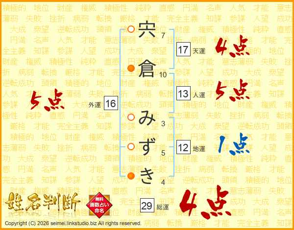宍倉みずきさんの天運は17画の4点!