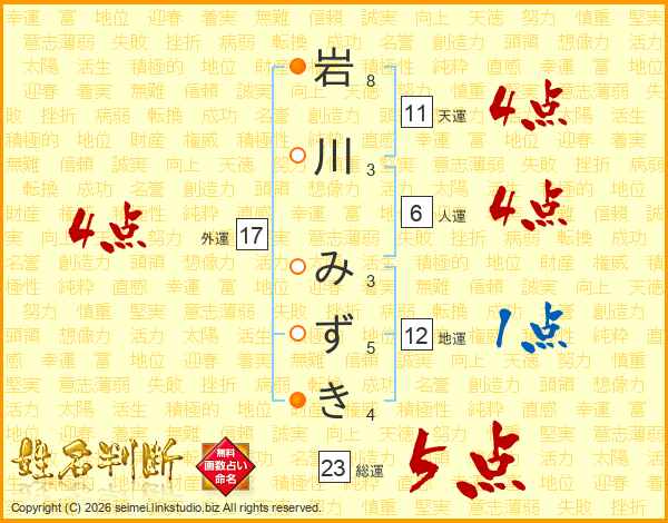 岩川みずきさんの天運は11画の4点!