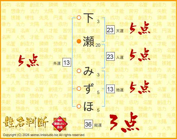 下瀬みずほさんの外運は13画の5点!