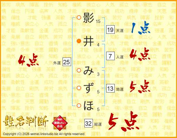 影(15画)井(4画) み(3画)ず(5画)ほ(5画)