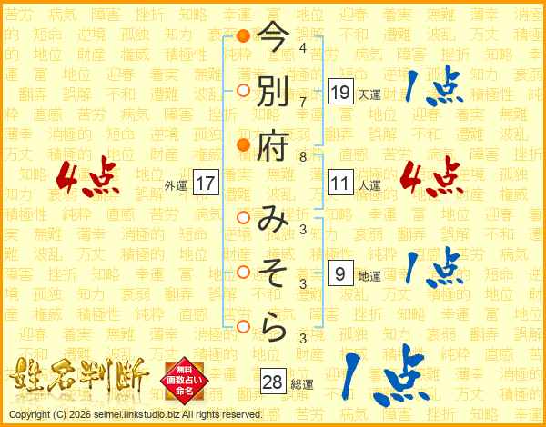 今別府みそらさんの人運は11画の4点!