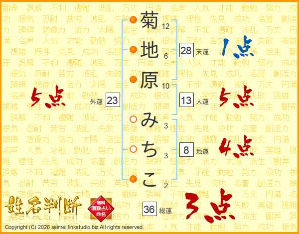 菊(12画)地(6画)原(10画) み(3画)ち(3画)こ(2画)