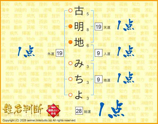 古明地みちよさんの天運は19画の1点!
