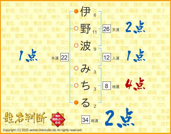 伊野波みちるさんの天運は26画の2点!