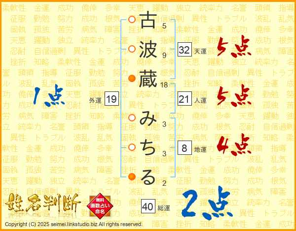 古波蔵みちるさんの天運は32画の5点!