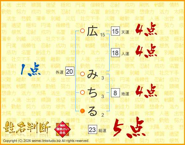 広みちるさんの総運は23画の5点!