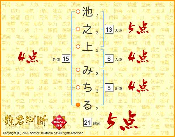 池之上みちるさんの外運は15画の4点!