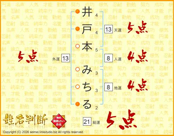 井(4画)戸(4画)本(5画) み(3画)ち(3画)る(2画)