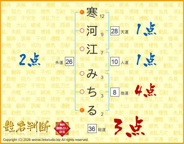 寒河江みちるさんの総運は36画の3点!