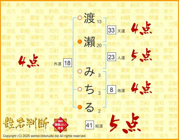 渡瀨みちるさんの外運は18画の4点!
