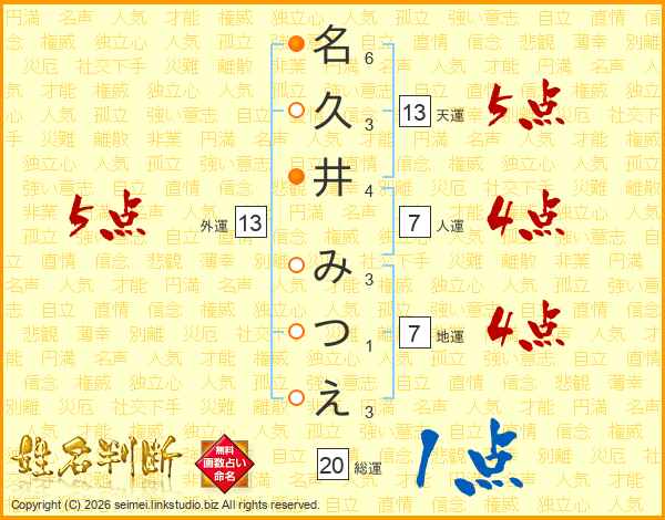 名(6画)久(3画)井(4画) み(3画)つ(1画)え(3画)