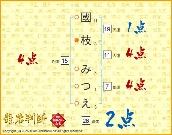 國枝みつえさんの総運は26画の2点!