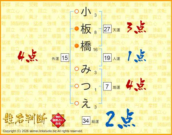 小板橋みつえさんの総運は34画の2点!