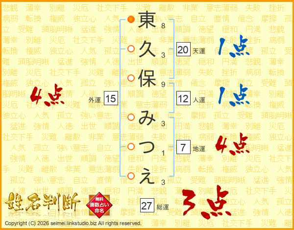 東久保みつえさんの総運は27画の3点!