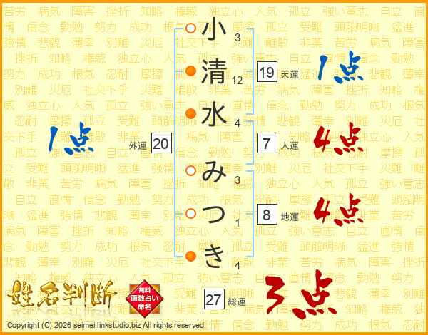 小清水みつきさんの総運は27画の3点!