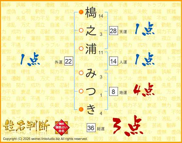 槝(14画)之(3画)浦(11画) み(3画)つ(1画)き(4画)
