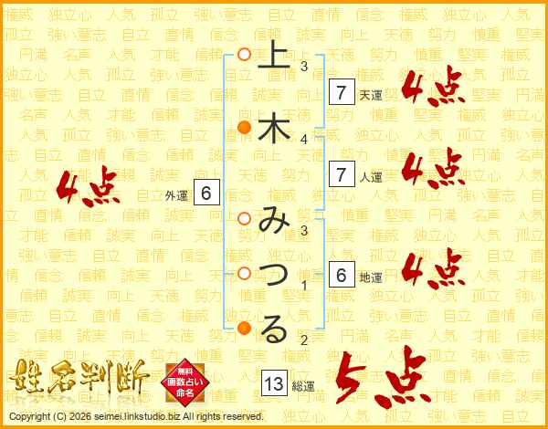 上木みつるさんの天運は7画の4点!