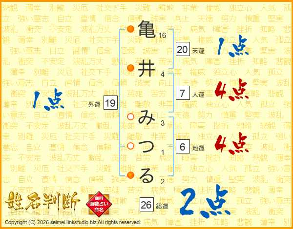 亀井みつるさんの総運は26画の2点!