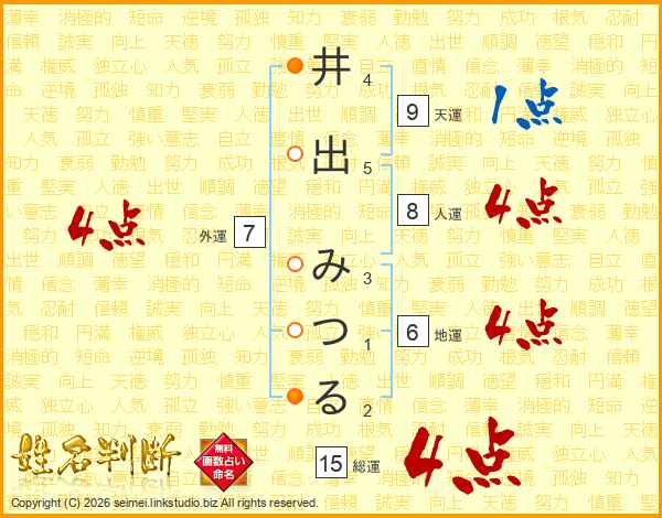 井(4画)出(5画) み(3画)つ(1画)る(2画)