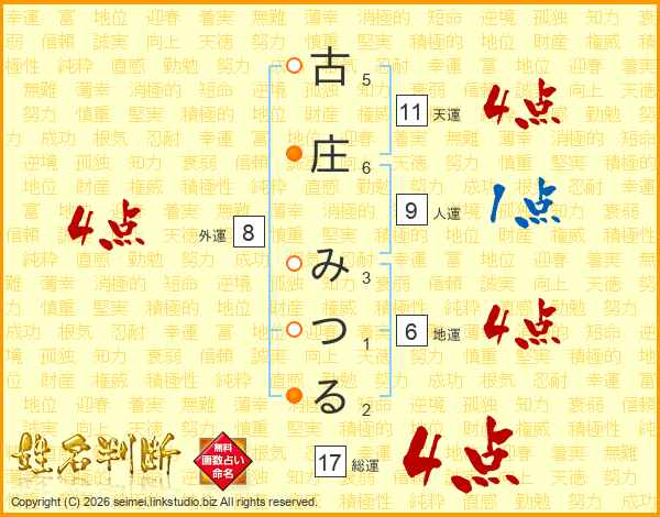 古庄みつるさんの天運は11画の4点!