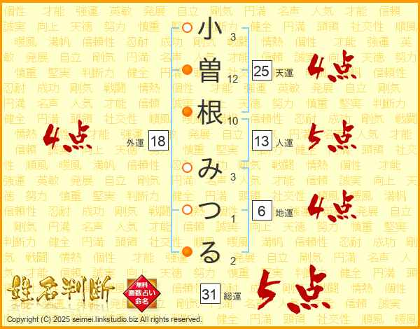 小(3画)曽(12画)根(10画) み(3画)つ(1画)る(2画)