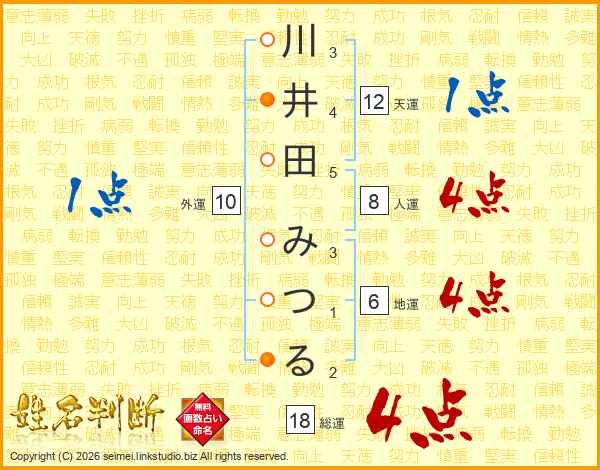 川井田みつるさんの総運は18画の4点!