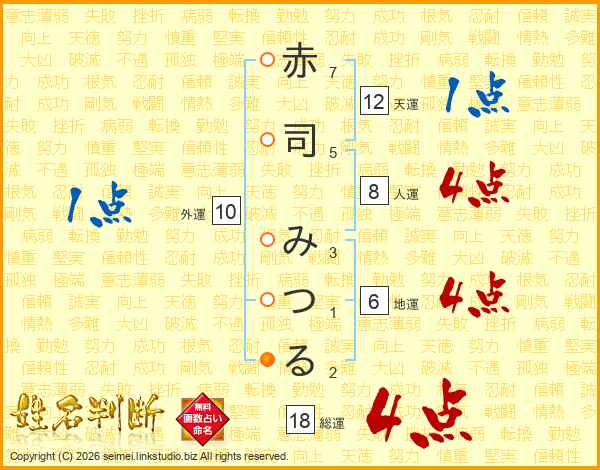 赤司みつるさんの総運は18画の4点!