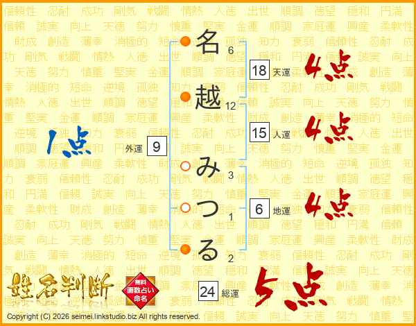 名越みつるさんの総運は24画の5点!