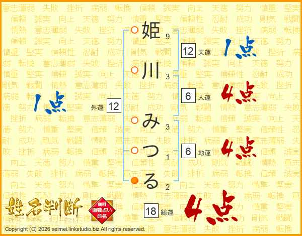 姫川みつるさんの総運は18画の4点!