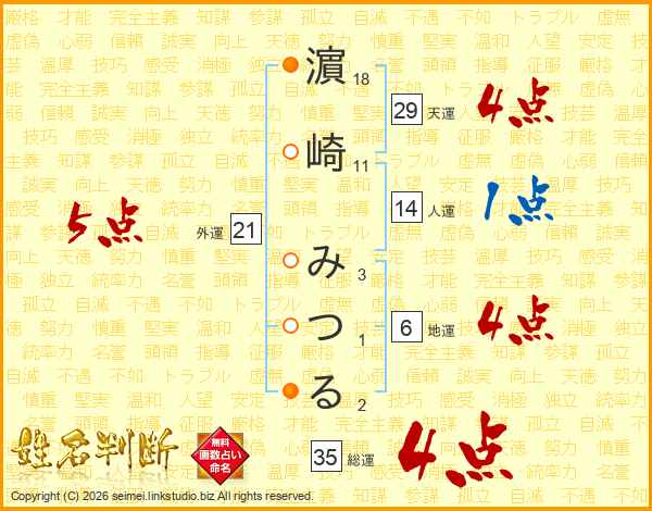 濵(18画)崎(11画) み(3画)つ(1画)る(2画)