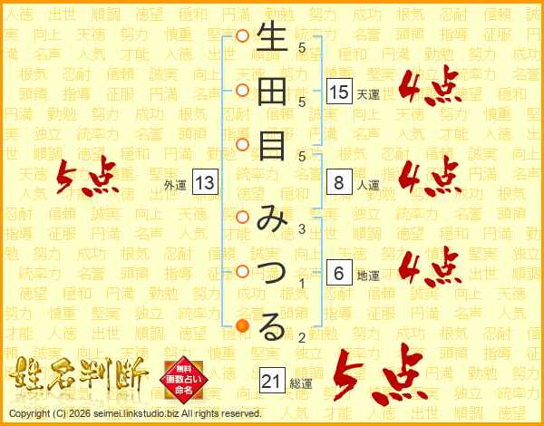 生田目みつるさんの外運は13画の5点!