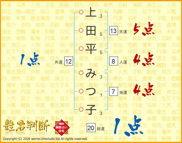 上田平みつ子さんの天運は13画の5点!