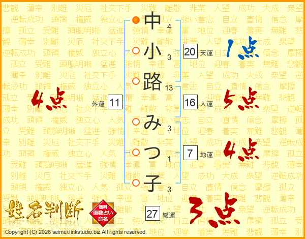 中(4画)小(3画)路(13画) み(3画)つ(1画)子(3画)